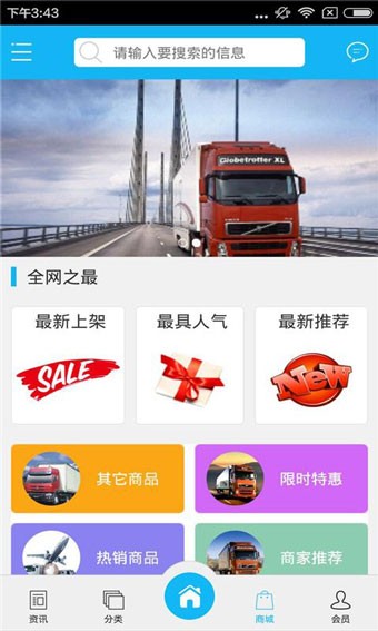 大件物流网门户网app是款集资讯阅读和线上购物为一体的手机app,帮助商家及时了解行业袋里商机、供求信息和招聘人才,让用户便捷的了解商品详情,在线选购商品等。
