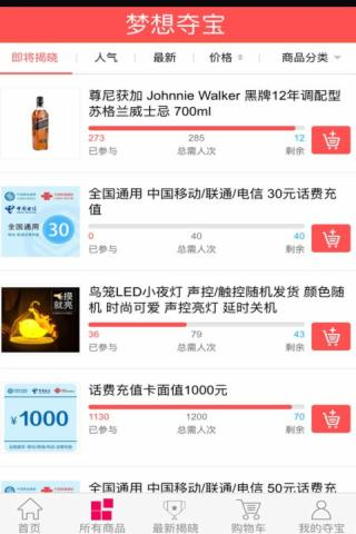 梦想夺宝app是一款网络购物应用,是成都原点教育有限公司推出的1元夺宝平台,也就是说只需1元就可以参与价值上千上万商品的抢购活动中。还等什么,快下载梦想夺宝app,加入夺宝退伍吧。