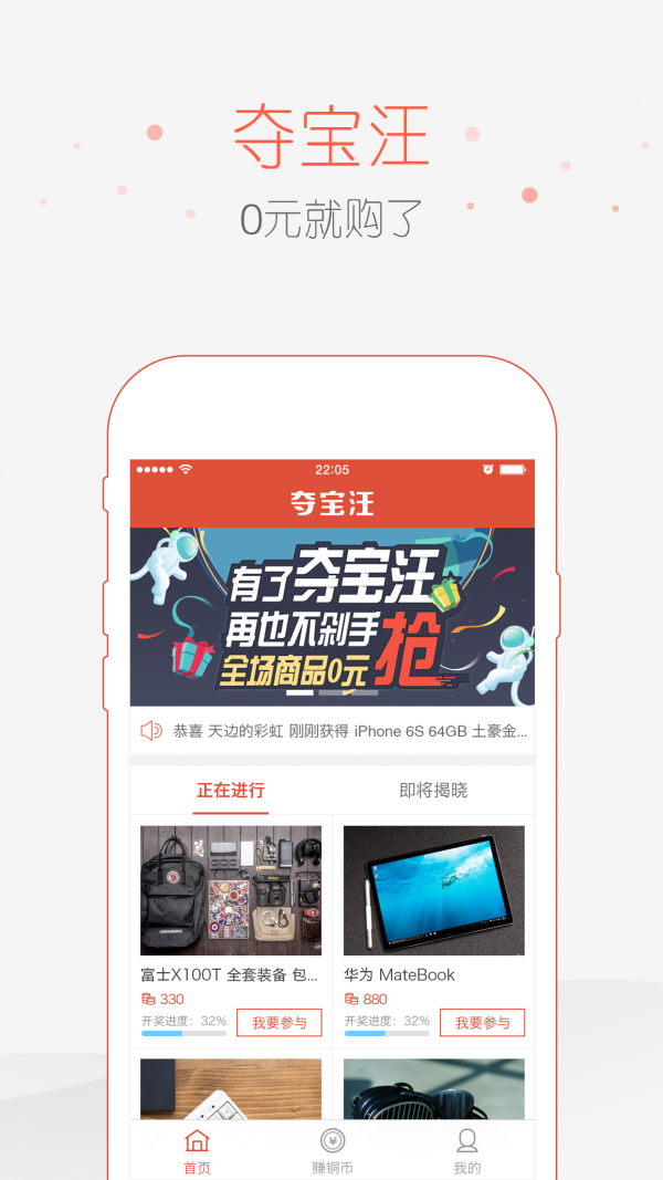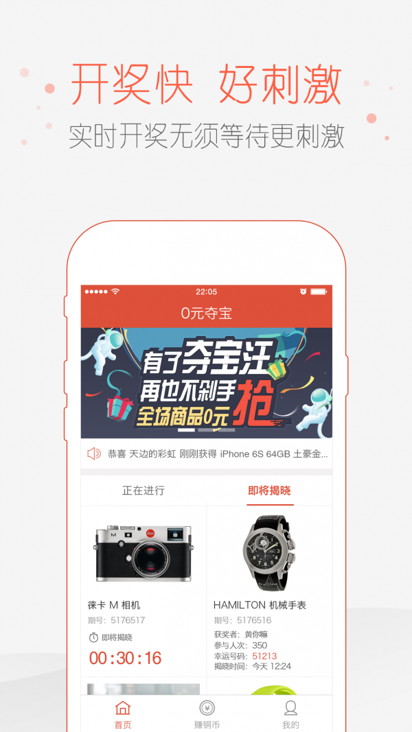 0元夺宝实时开奖比抢红包更刺激,0成本即有机会带走iPhone或iPad等上百款潮流新品!