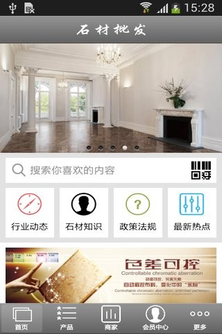 石材批发app是款集资讯移动和线上购物一天的手机app,在这里用户可查看石材知识、石材行业动态和政策法规,以及在线选购石材产品等。