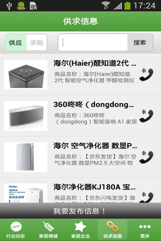 【供求信息】:本应用利用列表的形式清晰的展示出各种产品的供求讯息。