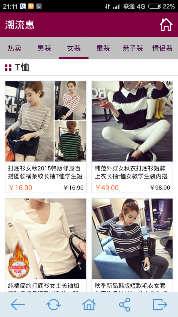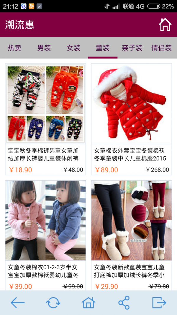 潮流惠是阿里巴巴旗下的专为购物用户倾心打造购物平台,从淘宝商品中精挑细选最热卖商品,以更高的服务标准为消费者提供精致性价的商品,商品包含男装.女装.童装.亲子装等最超值的宝贝,不求数量多,但求每件都是超值精品!每日更新,限时抢购! 每天都有精选最超值的包邮宝贝!每天都记得来看哦!