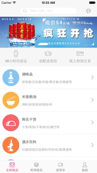 小微解决方案:支持“同城批货”,急需补货时,可同城搜索,优先选择离自己更近的货源,当天订货当天到货,更有“团批”解决小数量批货问题,搜索周边零售商货源,及时补货。