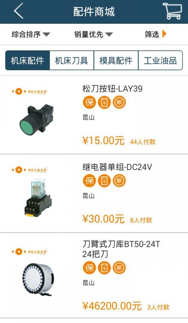完成机床配件的分类查看和支付。完成订单状态查询。完成套餐搭配、机床附件共同购买。