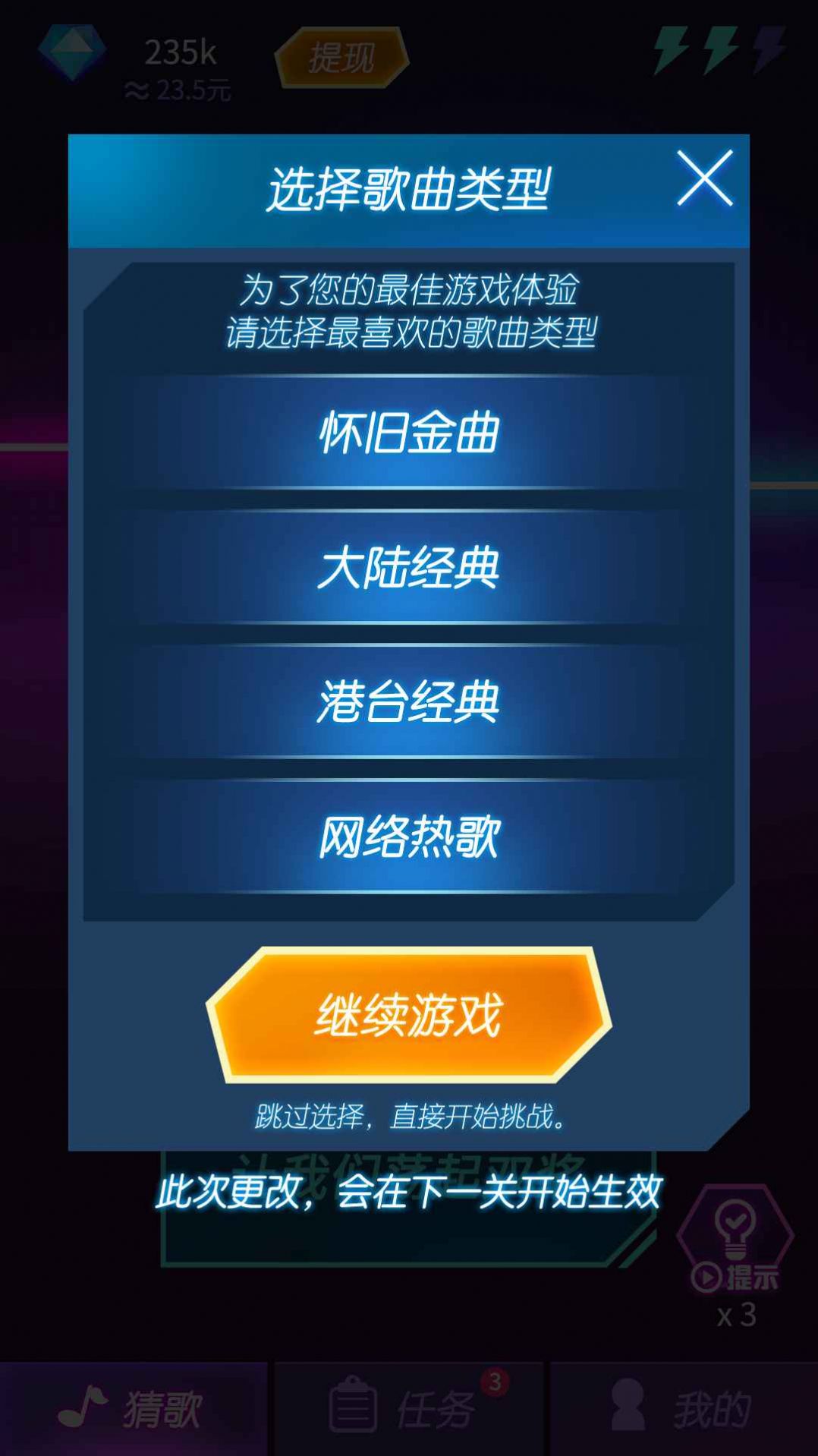 2、挑战方式还是挺自由的,而且拥有不少有趣的规则等待你在游戏当中去进行,体验更欢乐的猜歌闯关冒险。