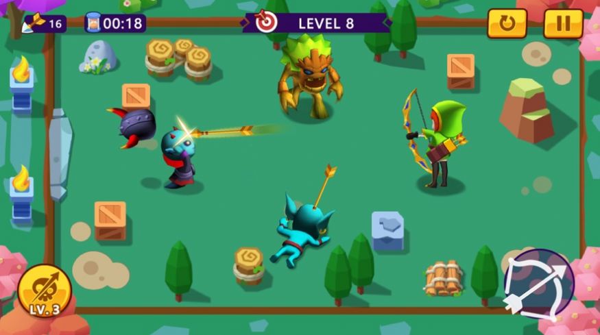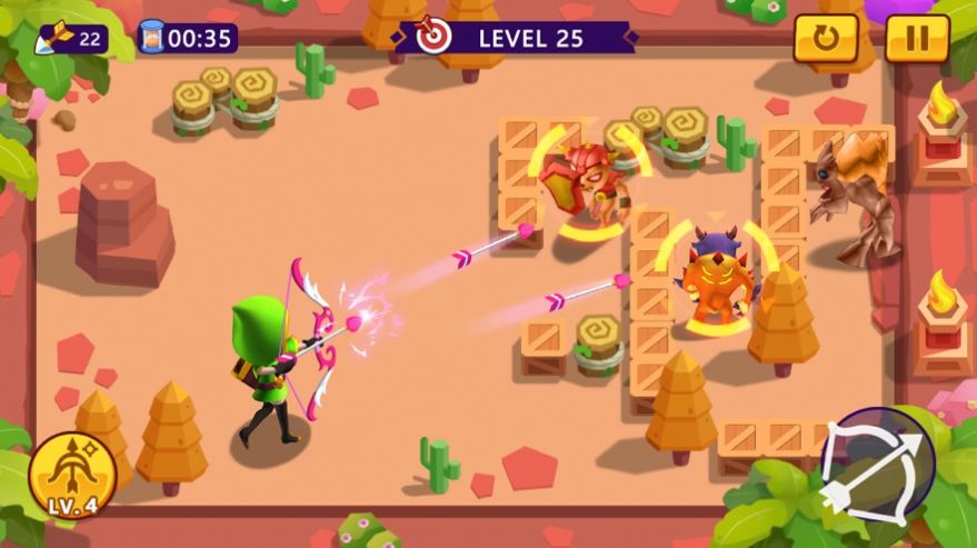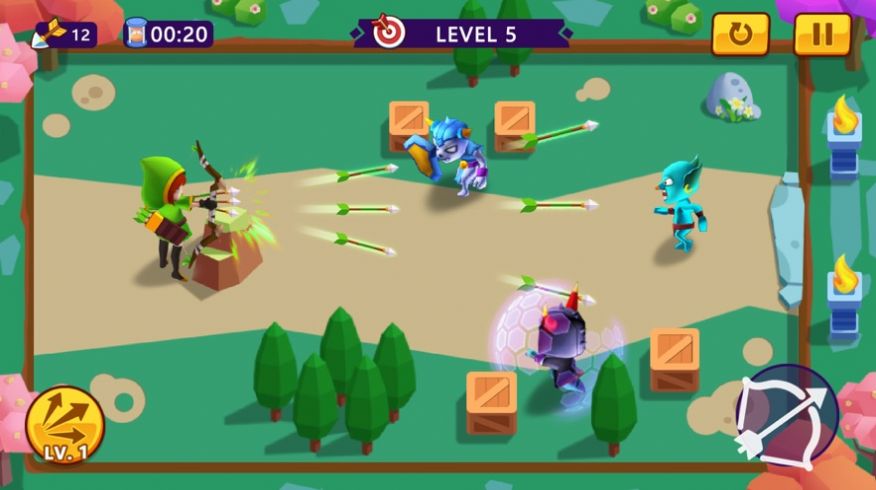 森林中拥有很多妖怪等你来解决,而这时候弓箭手们则需要面对前来进攻的妖怪进行射击,直到完成关卡的挑战成功了你就可以获得到丰富的奖励,同时还能够提升玩家们的弓箭手等级,从而可以学习到更多技能,比如多个弓箭一起射出去,命中的敌人也就越多,当然你也可以通过购买武器装备来提升弓箭手的攻击力。