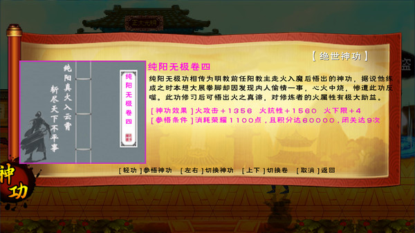 在本游戏中你可以自创武功,自创门派,培养NPC,车轮单挑,3V3,开店倒卖,修仙入魔等等...所以,这不仅仅是情怀,更是全新的旅程!