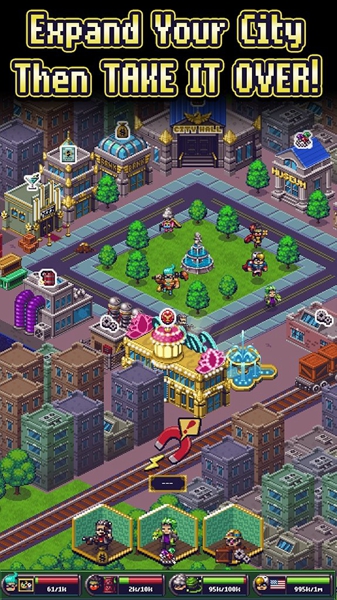空闲策划者完整存档版是一款你像素风格的模拟反派游戏,玩家将在游戏中发明建造各式各样的陷阱,以及武器,利用这些高科技武器击败游戏中的超级英雄,突袭上面的城市以获得宝贵的资源。解锁新的研究和技能,夺得对这个世界的掌控权,成功与否,你的命运又将会如何,你可以作为反派逆袭正义,接管世界么?快来下载开启你的邪恶帝国改造计划吧!