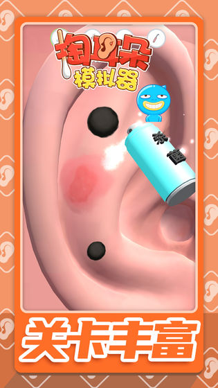 2、丰富的关卡挑战,解锁更多的挖耳朵的工具,尝试不同的搭配方式,让你掏出更多的污垢;