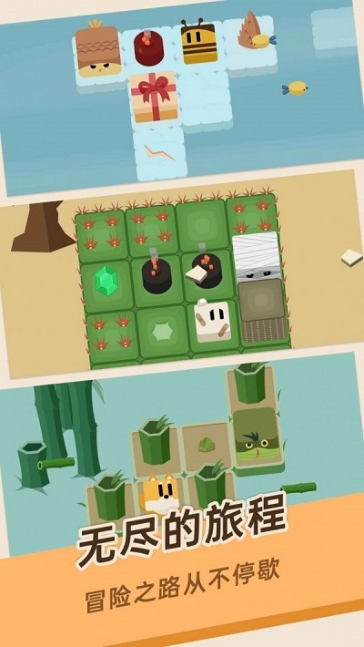 3、特别的冒险旅程,用手指划动的方式,引领着豆腐方块来进行冒险跳跃。