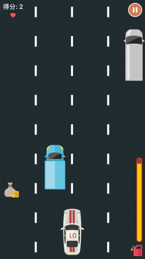 1、这款游戏的玩法十分简单,玩家只需要左右倾斜手机控制汽车移动即可,躲避路途上来往的汽车。