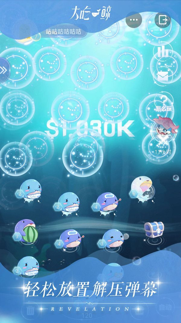 1、趣味养鲸,轻松进阶,不同等级的鲸,创造的收益也是有区别的,高级鲸奖励金币更多。