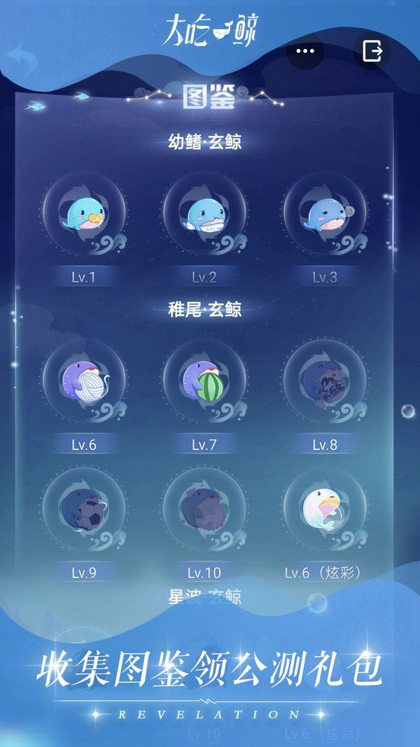 3、在大吃一鲸游戏上您需要收集很多插图。您的鲸越高级,获得的奖励就越大。