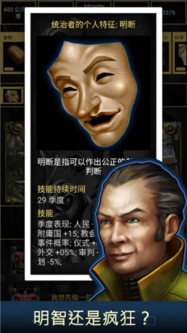 4、游戏采用回合制,在每个回合里,玩家需要做出自己的决策,你的每个决策都影响着王国的未来以及在位国王的寿命。