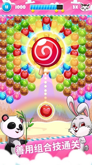 3、没有难度的操作,只需要发射相同颜色的泡泡即可,熊猫将快速解救。