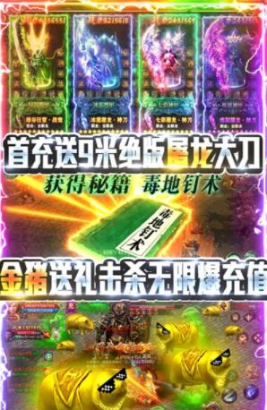 4.首充即送绝版9米黄金屠龙刀!砍怪如切菜,神装光柱满地爆!