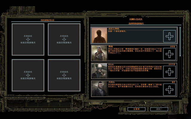 第一个我喜欢领导型的。带大家冲锋陷阵,在主点领导和智慧。副点警觉。武器在考虑近战好还是手枪冲锋枪,领导是肯定要嘴炮的。其余的都点了开启不同对话选项。