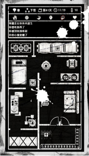 5.除了这些,游戏还引入了“创伤”、“感染程度”、“饥饿值”、“情绪”等相互关联的因素。比如外伤治疗不及时会增加感染水平,长期饥饿会影响情绪等。,和季节、温度、天气等因素也有一定的关系,这就需要球员综合考虑所有因素。一旦某个环节出了问题,很可能导致游戏结束。