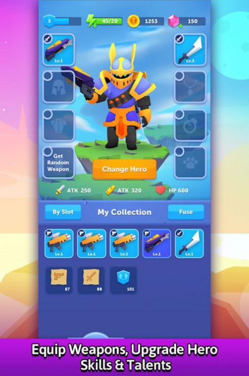 游戏内的人物主角都是以橡皮人为主体打造的,很容易就可以上手,并且玩起来也是非常的简单,大家只需要操控你的角色来瞄准敌人进而射击就行,只需要击杀每道关卡内所有的敌人数量那么就可以解锁下一道关卡,从而继续挑战,另外还能够获得奖励道具,而在游戏中使用的武器是需要进行解锁购买的,只有花费金币才能够获取全新的武器使用。