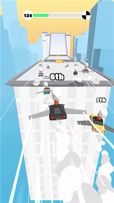 玩家将操控不同的赛车,在各式的屋顶上展开激烈紧张的刺激竞速之旅。比较考验玩家的操作技巧。需要灵活避开各种陷阱机关,再一口气超越对手吧。