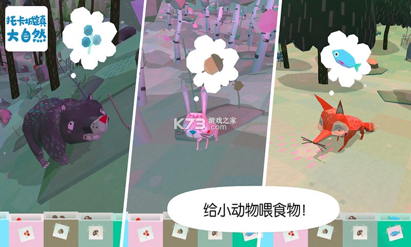 这一款画面清新的托卡系列的趣味休闲手游,游戏中玩家将自己来打造一个大自然,可以选择河流、森林、山峰、动物等来打造一个生机盎然的自然界,玩家可以和这些动物互动,喂给它们食物等,接近自然,拥抱自然。