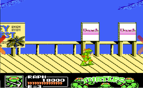 2.把四个乌龟战士都玩一遍:达芬奇、拉斐尔、多那太罗、米开朗基罗都可以操控,每个人都有自己独特的动作、武器、格斗技巧,比如米开朗基罗的双截棍面划、拉斐尔的叉抛。