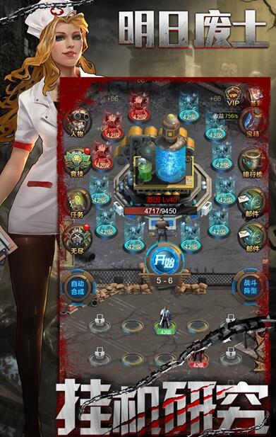 《明日废土》是一款末日废土题材的休闲合成类游戏,在游戏中玩家将处于一个被末日病毒侵蚀的废土世界,因此生长和繁殖了众多末世生物以及被感染的地球生物。幸存者们聚集在一起,研究基因、抢夺资源、克隆军团,在这熟悉又陌生的世界不断探险,搜索明日废土的神秘。