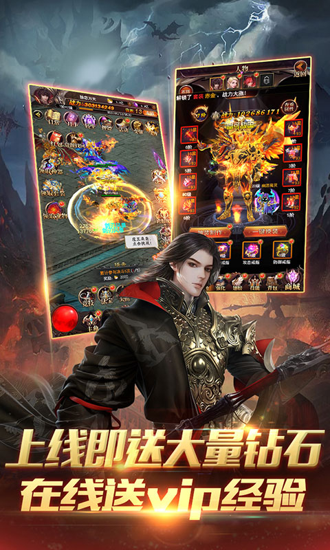 1.上线就送VIP14、88888钻石、188万金币,648充值(在线2小时领取)
