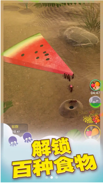 解锁海量食物,满足工蚁需求,解锁全新区域,升级工蚁部队,建造蚂蚁帝国。