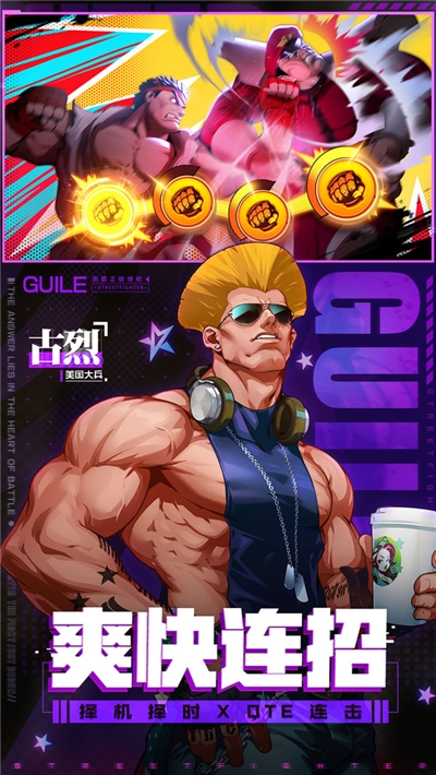 正版街霸ip打造的一款战斗手游, 童年时的记忆不知你还是否记得,作为国内首款正版街霸手游,保留着自己的一概的经典风格,里面还加入了众多的经典玩法,玩家可以自由的挑战身边的对手,一起组队开黑, 体验不同的乐趣。在擂台中和好友一起决高下,新颖的玩法加入和好友一 起共同作战。
