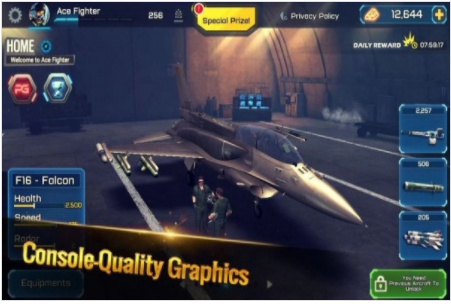 王牌战斗机是一款非常经典的飞行射击类游戏,游戏模拟现代战机作战,里面有多种款式的王牌战斗机可供玩家们解锁驾驶,驾驶你的战斗机在高空中自由飞行,让每一位进入游戏的玩家感受激情无限的空战快感,你所拥有的出色微操技巧能够帮助你快速适应不同局势的战场,并且能够在其中以更亮眼的发挥成为最后的胜者!如果我们在地下作战的话,还能使用小型导弹瞄准敌方战机射击,将其射落。王牌战斗机战争还有高空驾驶的游戏体验,还有精彩的战斗环境,有非常热血的战斗模式供你选择。