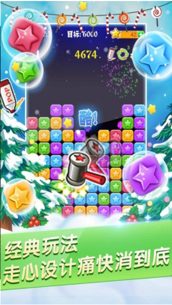 消灭星星经典版是一款简单快乐易用的休闲智育类手游。游戏内的画面清新可爱,游戏的玩法也简单地表现出快乐。经典版是最初的版本,游戏内的水平游戏是最初的样子。以点击的方式吸引了无数玩家。始终是休闲游戏中的佼佼者,玩家每年消灭的星星可以绕过银河几圈。热情的圣诞狂欢之夜,为小伙伴们准备了超豪华的礼物,还有新的游戏、新的活动、新的惊喜哦圣诞节玩游戏,有机会轻松获得圣诞树、圣诞老人、音乐钱麋鹿等实物大奖。