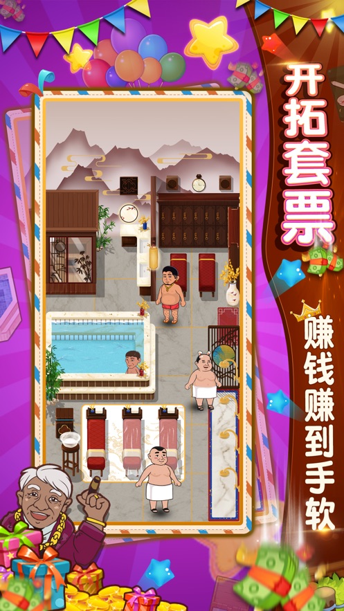 在这款游戏内,玩家们将作为浴池的老板,你需要重振旗鼓壮大你的浴室澡堂,而且在这款游戏内,玩家们可以提供各种服务哦,比如说搓背、大众公共澡堂、男女澡堂、单间澡堂等等提供给顾客们使用,这样你才可以获得到更多的收益,而得到的收益报酬还能够用来扩大浴池规模、提升浴池档次,这样就可以吸引更多顾客们来享受服务了。