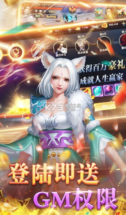 1、上线送满V和GM3的特权,更有数十万元宝让你能轻松买空整个商城。
