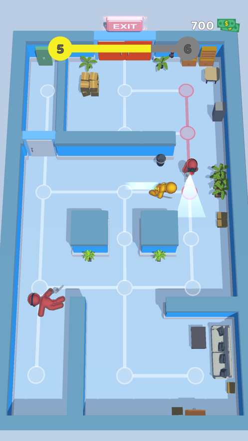 Hyper Agent带你体验你是一个超级特工,随时准备好接受特工任务挑战,欢乐闯关迎接无数的挑战,尽情闯关解锁全新的关卡。多样场景中来挑战闯关任务,在场景中灵活穿梭躲避开巡逻的人,潜入到敌人的办公室中获取机密,不被敌人发现并成功逃离出去。