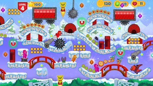 2.探索跑步的世界能够使你和著名的橡皮熊一起来玩,当然黄金也能够使你在不断奔跑的时候收集到。