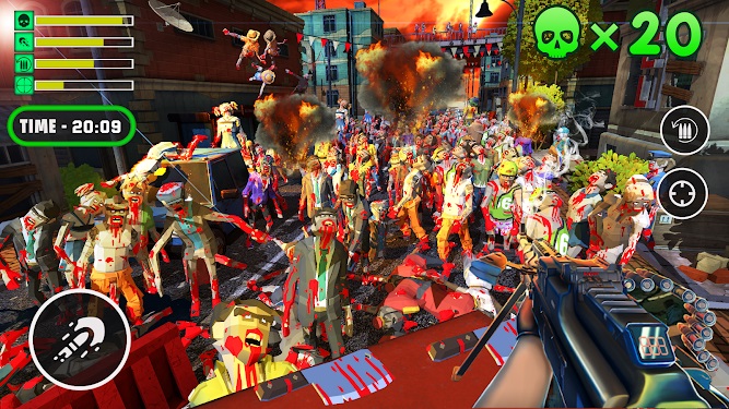 Fps僵尸枪战防御游戏(Fps Zombie Shootout Defence):成为强大的人,握紧枪的扳机,不要在这个fps射击游戏中惊慌失措,因为步行变异的人会在这个射击游戏中催你。您可能还记得,致命病毒是在几年前传播的,其导致整个城市范围内的僵尸大爆发的原因是,人类正在变成致命的僵尸。