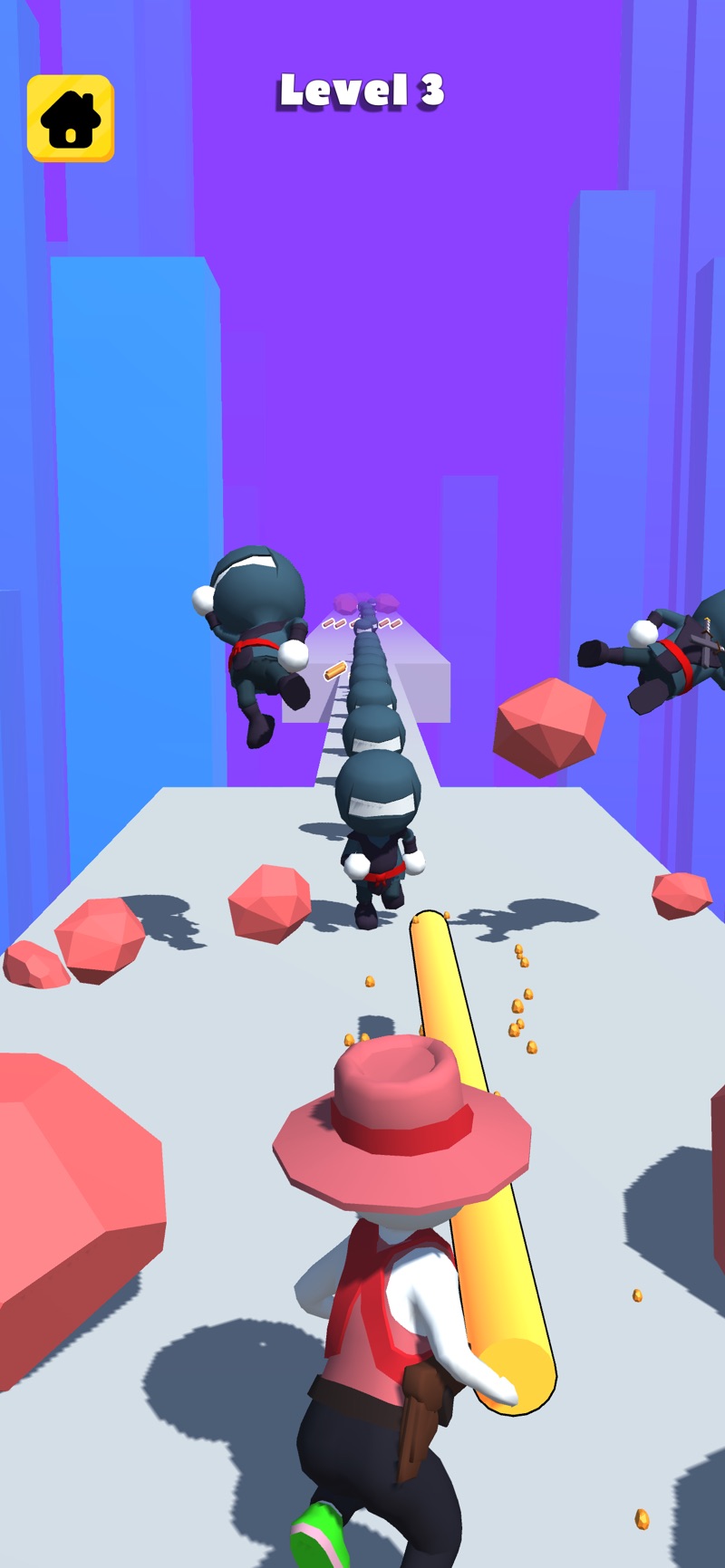 1、棍子的体积和长度不是你能决定的,但是可以发挥优势来击飞所有敌人,击碎障碍;
