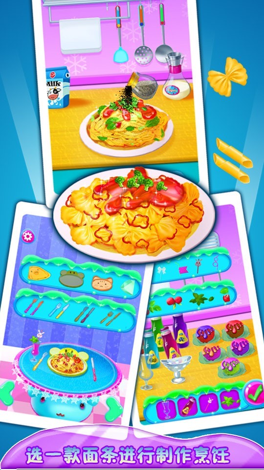 游戏相当的轻松有趣并且多种不一样的休闲玩法,可以让玩家快速的制作各种各样的意大利面,并且每一次制作都给玩家带来不一样的做饭乐趣,多种不同的制作美食方法可以使你身份轻松的制作各种各样的美食,并且快速的提升自己的实力。