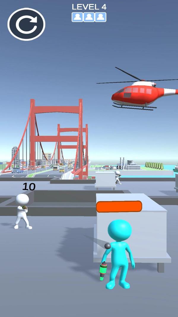 水枪射击大师这作为一款非常不错的休闲益智的小游戏,游戏的画面看起来非常卡通,玩家在游戏里需要操作住自己的小人来和其它的小人对战,在和敌人对战的过程中,玩家也得躲避敌人的攻击,因为敌人手里面也是拿有水枪的,只要敌人的水枪打到自己的身上,自己的血量就会变得非常少。