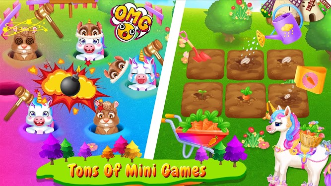 3、与独角兽的朋友一起玩独角兽派对中的所有有趣活动,无尽的玩乐乐趣。
