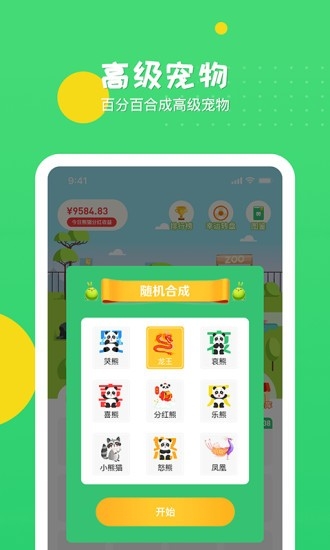 冲呀熊猫作为一款休闲生活日常解压的应用,轻松挂机就能赚金币,不断升级动物,合成38级高等级动物,收集图鉴,可以合成永久分红熊猫。