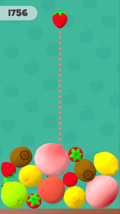 2、种类不同的水果一直不断的往下落,相同的水果合并得到更大的水果;
