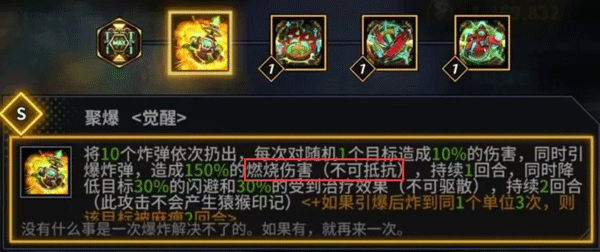 怒气技能(通常我们所说的大招):扔出10个炸弹,造成伤害并引爆,附加燃烧伤害。