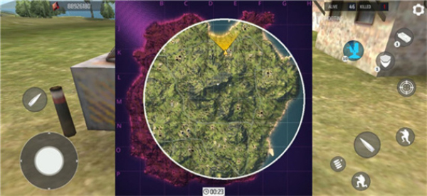 7、落地后,通过操控虚拟按键使人物移动,同时拾取地图上的枪械武器,用以消灭其他对手。