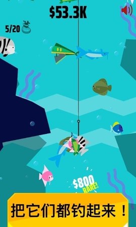 开心抓抓鱼游戏是一个非常好玩有意思的休闲钓鱼游戏,游戏有着简单质朴的画面风格,操作也是极其的简单,选择放下鱼钩的深度,然后向上拉起,将一路遇到的鱼类全部抓走,玩法简单却充满了乐趣,喜欢开心抓抓鱼游戏的小伙伴千万不要错过哦。