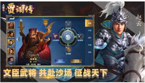 三国志贾诩传作为一款有趣烧脑的三国战略棋类游戏。超级丰富精彩的剧情内容和副本,让玩家可以尽情体验三国竞技对战带来的刺激,大量的武将任你培养对战,多种玩法可供选择体验,操作简单流畅,容易上手。汉灵帝中平年,黄巾起义爆发,从此开始了近百年的战乱时代,黄巾之乱、董卓之乱、群雄割据等等;好战的人,因天而立,依人而利,这游戏中,有各种天气、地形以及丰富的兵种,更加真实地体验三国战场。