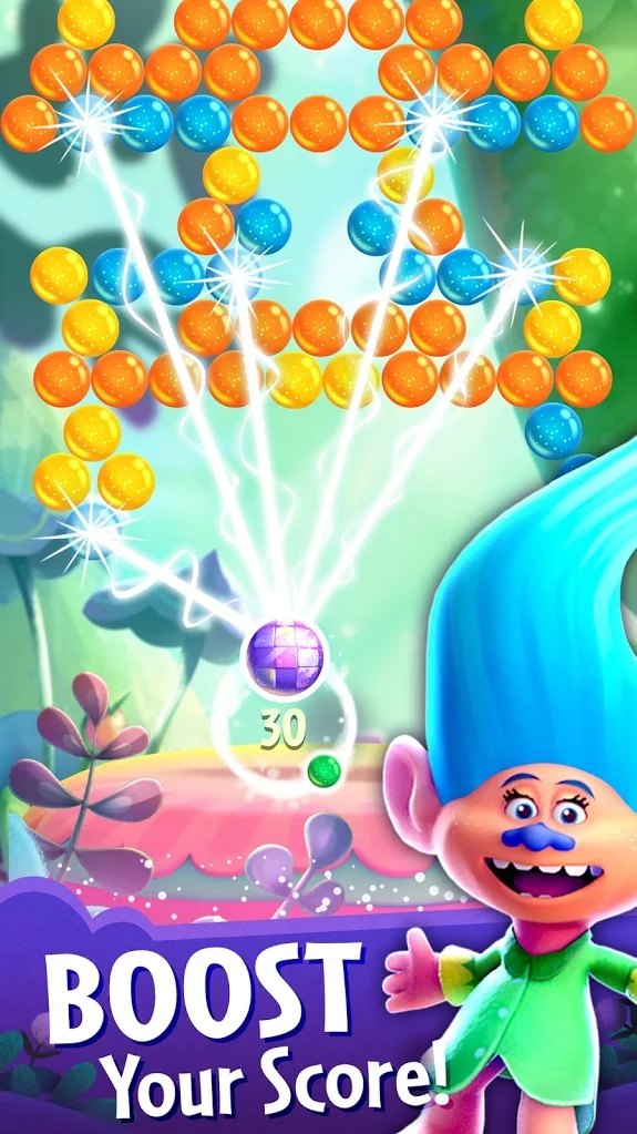 在TrollsPop中,小虫指望着您!它们被卡在气泡中-拍摄气泡以释放气泡!只有您可以保存它们!