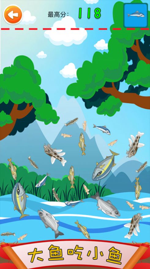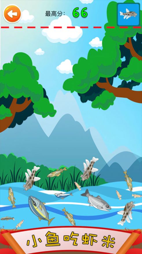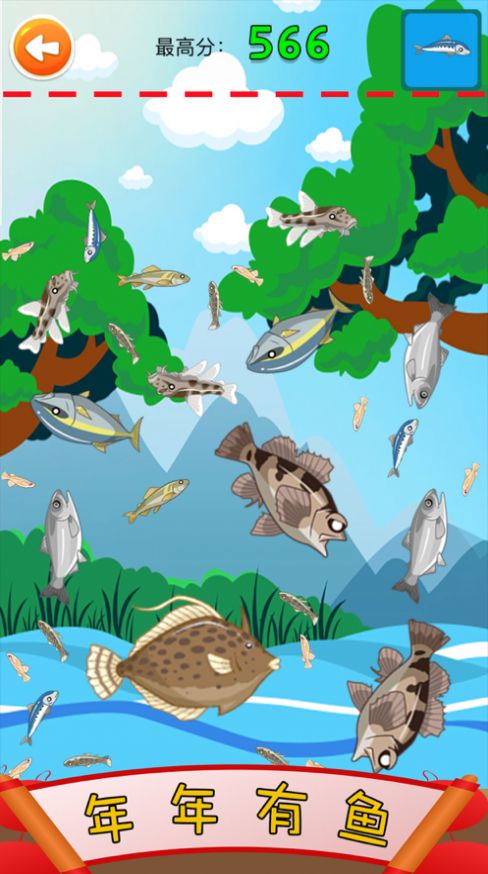 2、这些鱼类将会从水面上跳跃出来,一旦发现了一样的小鱼就需要将他们合成;