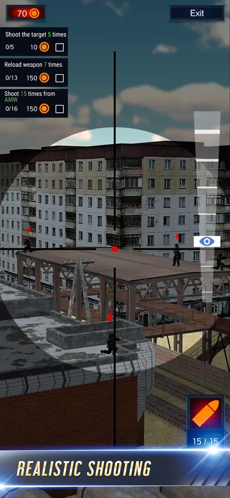 2、第一人称动作。成为顶级狙击手!并收获专属的各种枪支皮肤和独特武器。